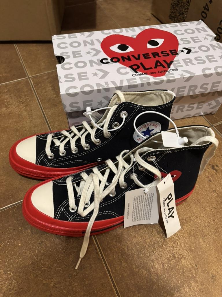 Comme Des Garçons Play X Converse Chuck 70 High Black Red Unisex Sneakers Egret A01793C