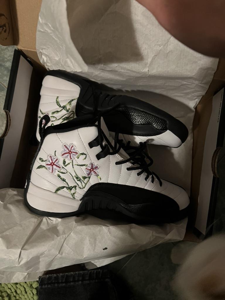 Air Jordan 12 Retro GS Floral Kids Sneakers White Vivid-Green Lavender-Mist DR6956-100