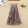 Golden Pleated Skirt Women Autumn and Winter New High Waist Slim A-line Skirt Medium Length Lace Mesh Skirt Female