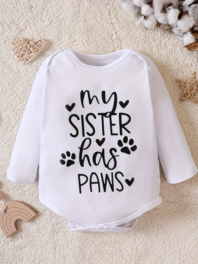 Baby Winter And Fall Onesie Long Sleeves “MY SISTER HAS PAWS” Round Neck 100% Cotton Triangle Onesie