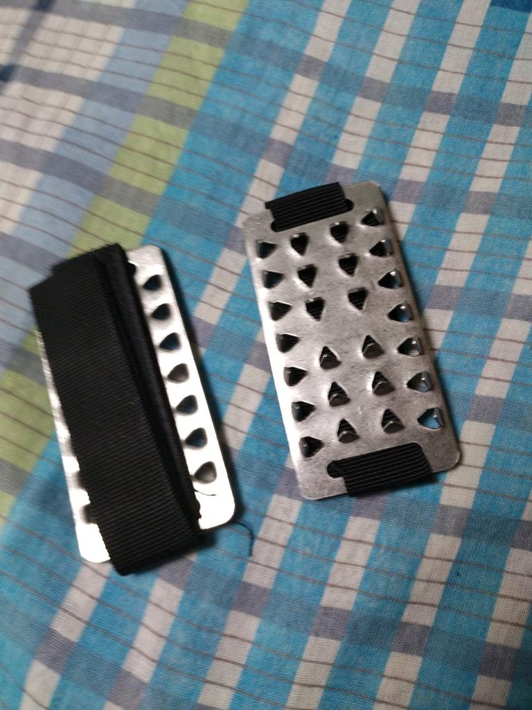 The metal is good, but the downside is that they don’t stay on the foot well, they fall off, you need to think of something to attach them.