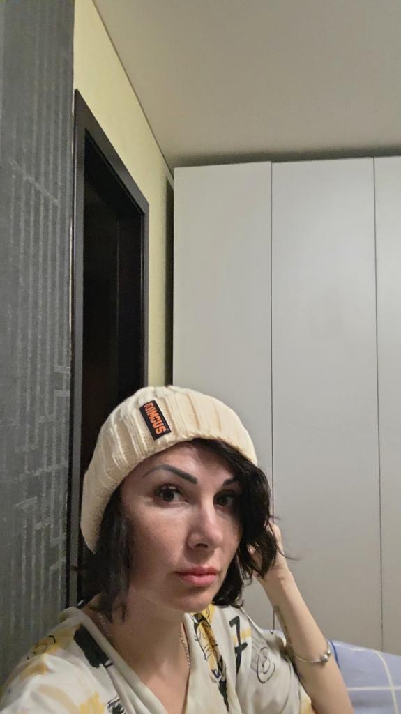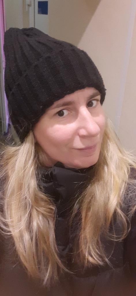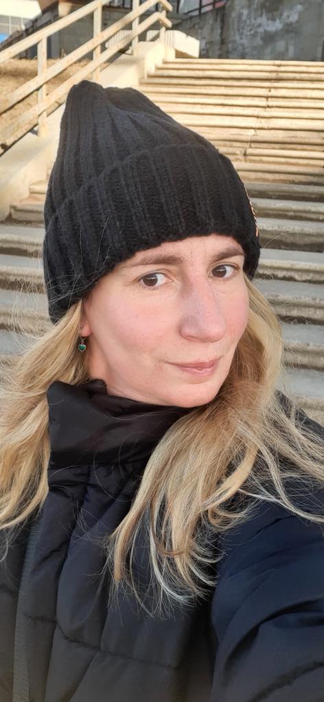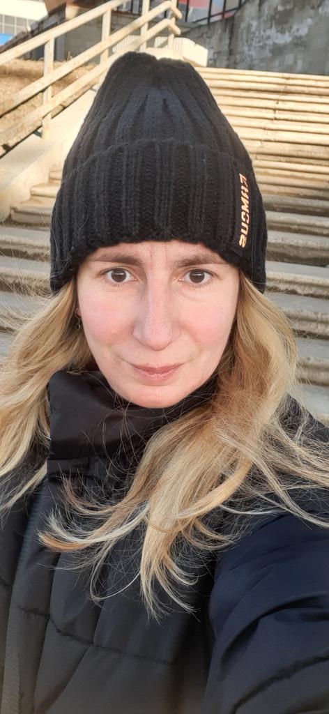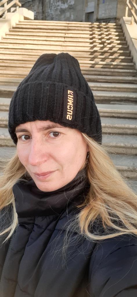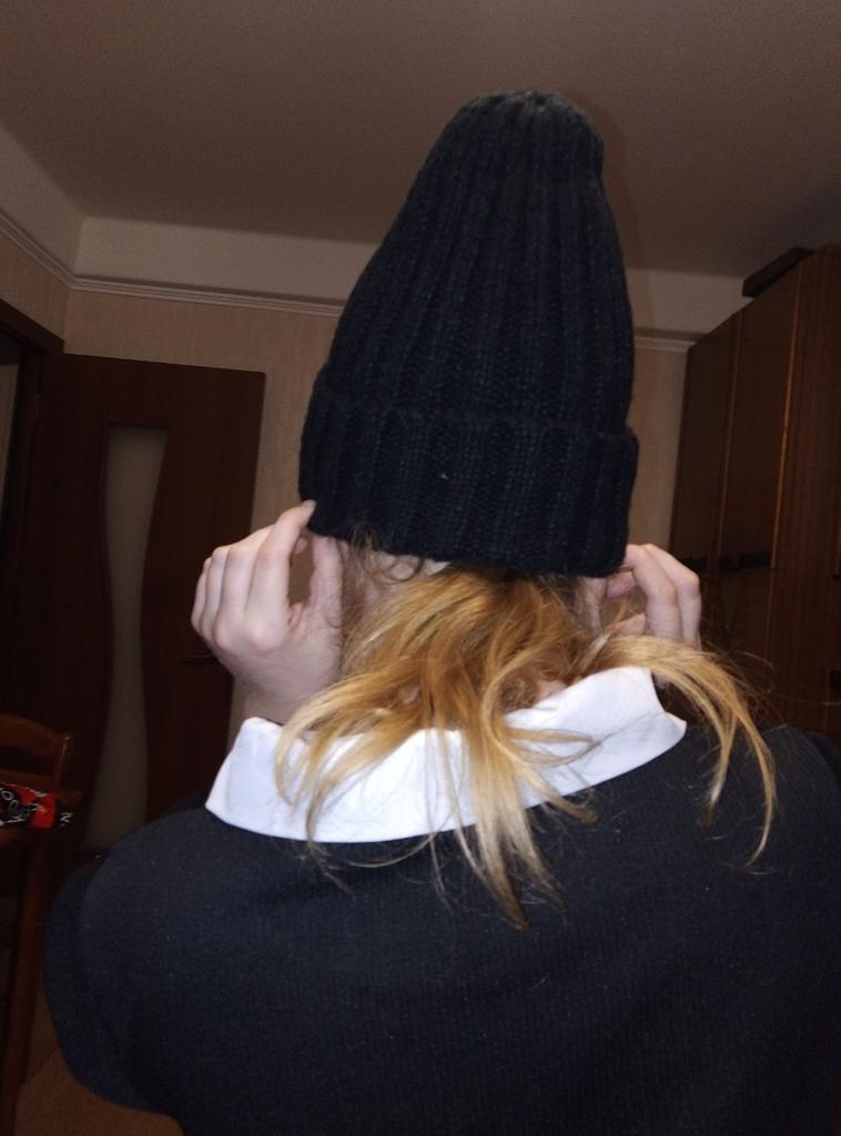 The hat is beautiful, high-quality. Thick knitted. But a little too big for me. I will try to tie it.