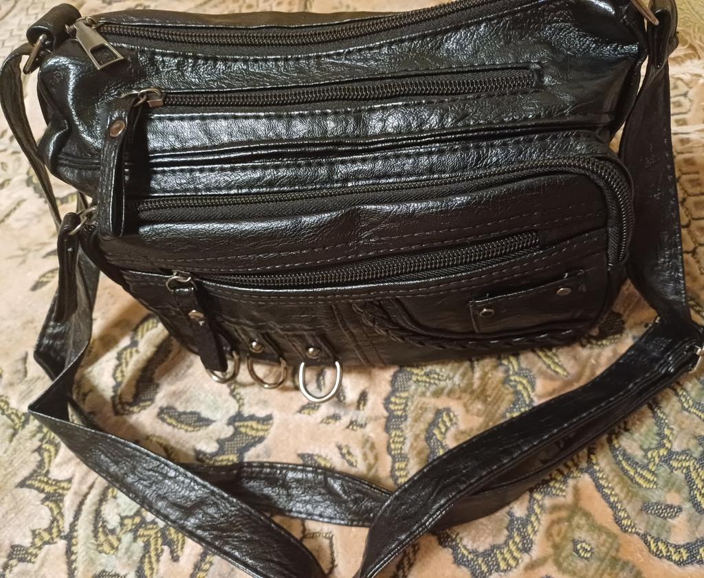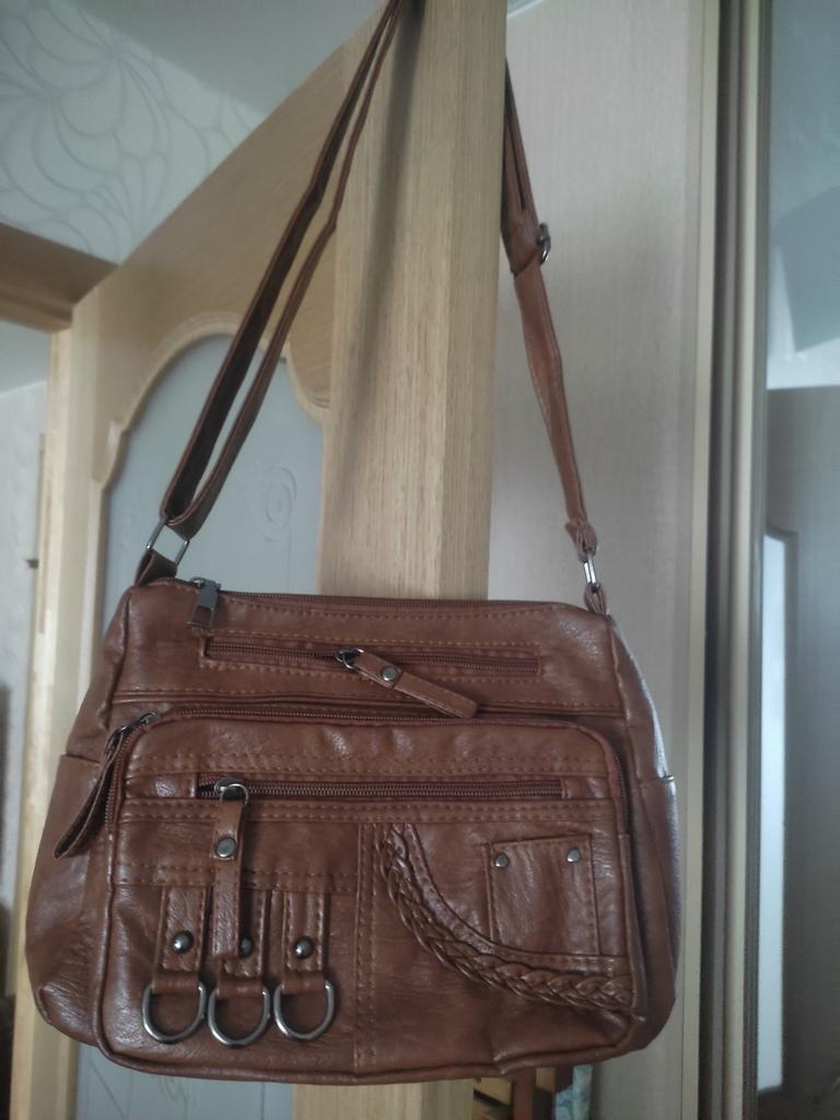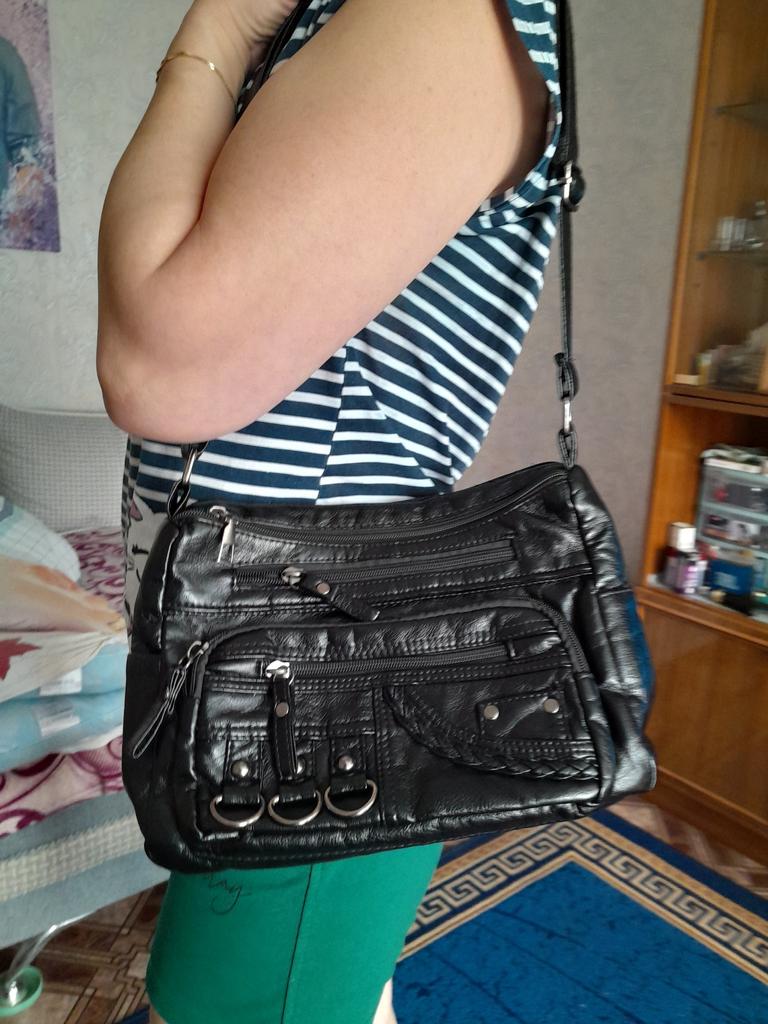 The handbag is super. Long strap, which can be shortened or lengthened if desired. Many pockets for various small things. Everything you need will fit in the bag, it is roomy enough. Removed a star for frayed threads on the strap (it is very difficult not to notice such a defect). I am satisfied with the purchase, although it is not pleasant to correct other people's mistakes, I had to untangle the threads and carefully tuck them under the tape.