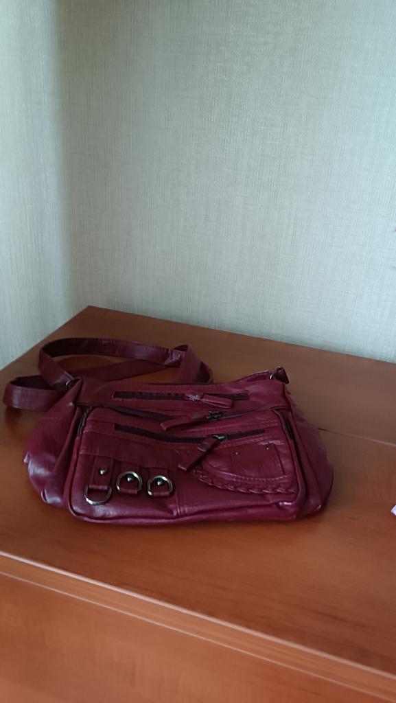 Very nice bag, made of soft cody. Convenient, because there are a lot of pockets. The color does not match a little, the picture is red, but it arrived - burgundy, but this is not a problem. I recommend