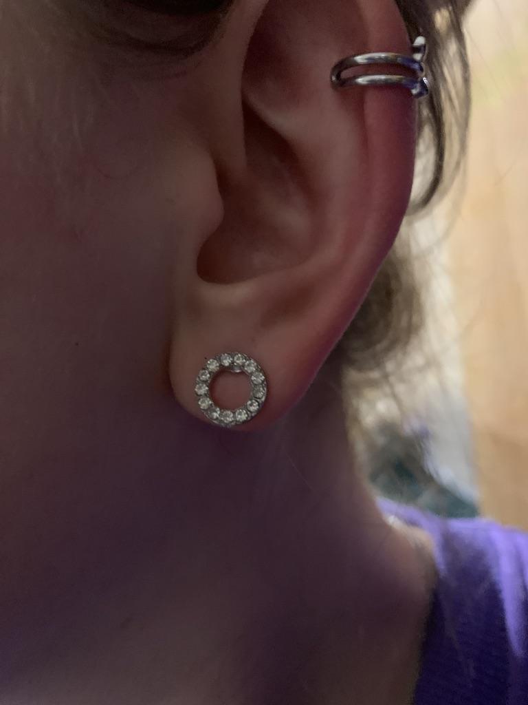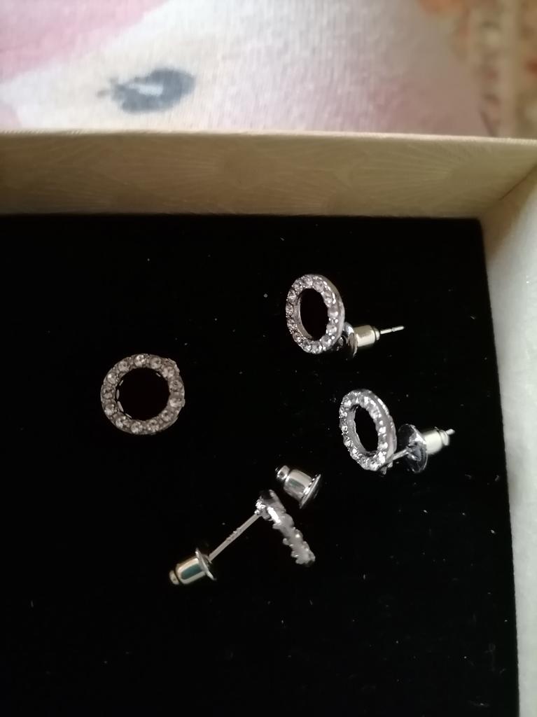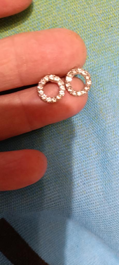 Very cute earrings. Glitter beautifully. I wear them very often and they don't get dark. Seems to be real silver. I like it a lot!