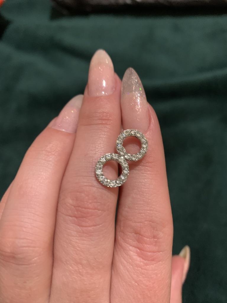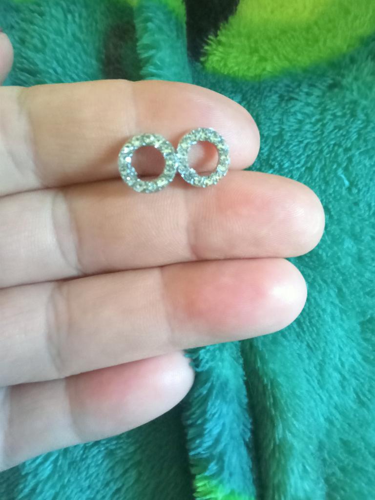 The earrings are small, neat, and look great! Thanks to the seller!💘