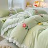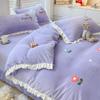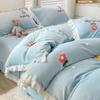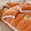 Winter Thickened Milk Velvet Towel Embroidered Bed Four-piece Anti-static Double-sided Velvet Coral Velvet Warm Sheet Quilt Cover