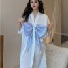 Nightdress Women Sweet Summer Ice Silk Pajama Thin Shirt Bow Large Size Princess Style Home Clothes Chic Midi Dress