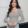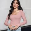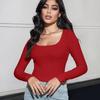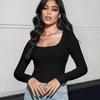 Autumn Slim Fit Square Neck Knit T-shirt Women Solid Long Sleeve Short Tshirts Female Fashion Tops Casual Sexy Tees Blusas 30288
