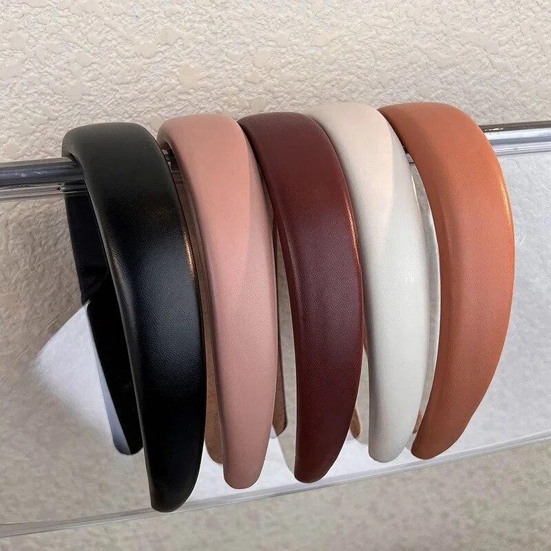 PU Leather Headbands for Women Girls Korean Style Wide Hairbands Elegant Female Hair Hoop Fashion Hair Accessories Headwear
