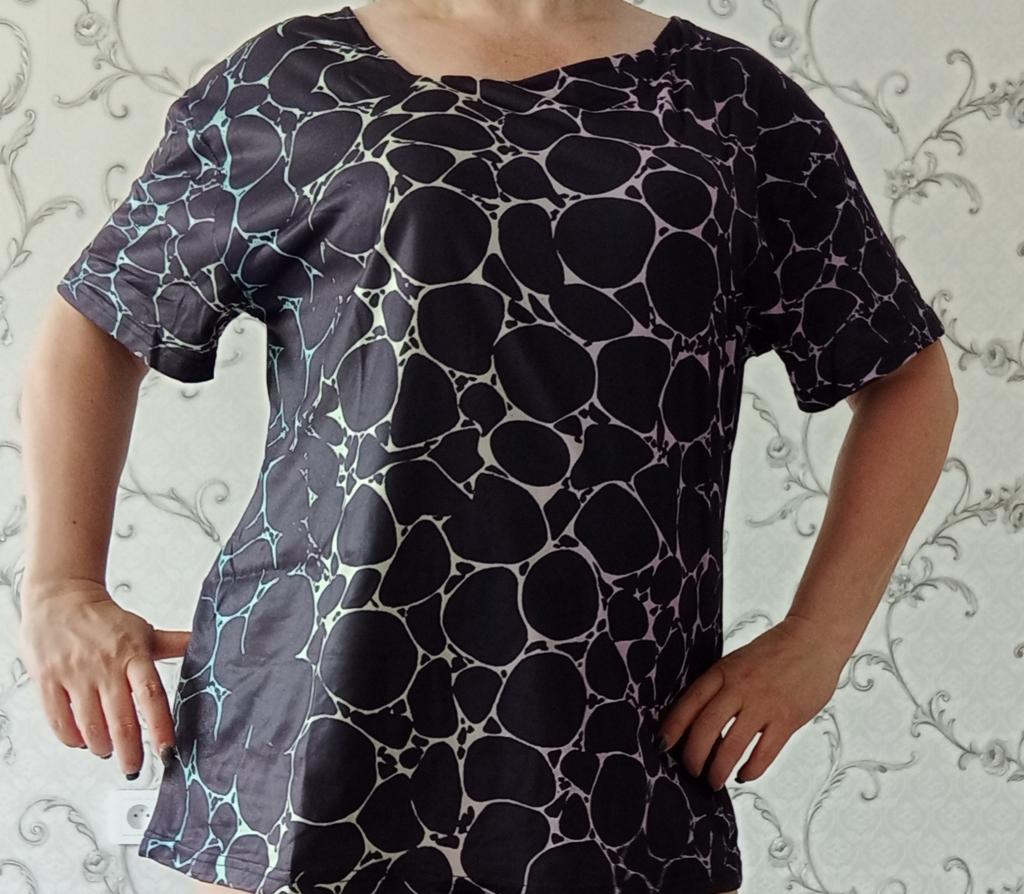 Perfect for size 50! The material is pleasant, silky, cool... Perfect for summer, the pattern is like in the picture.