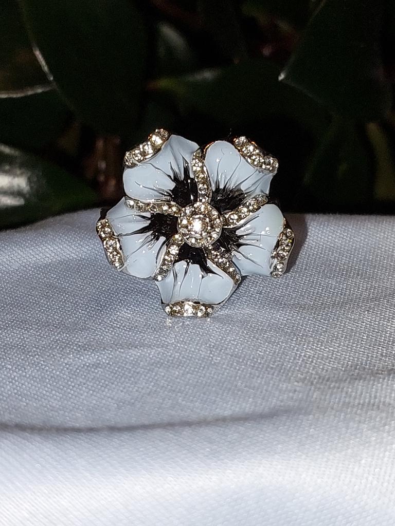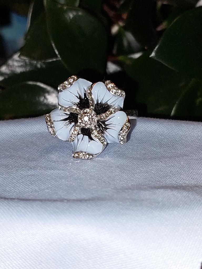 Women Rhinestone Inlaid Enamel Flower Finger Ring Jewelry Valentine Day Gift