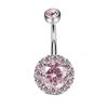 Women Rhinestone Inlaid Round Pendant Barbell Navel Ring Body Piercing Jewelry