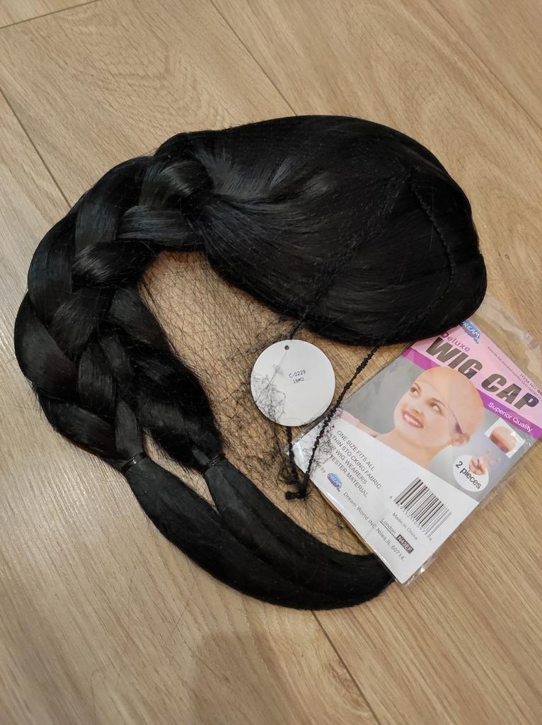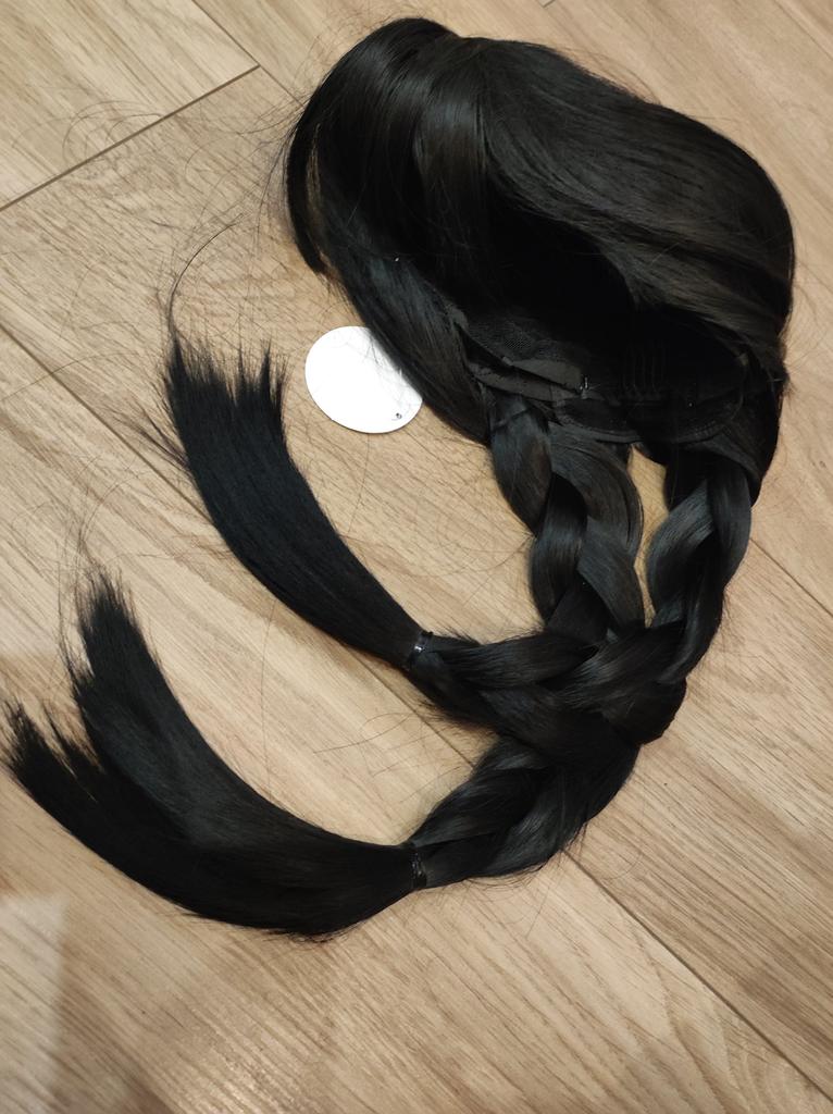 MISS WIG Synthetic Long Black Braids Wig with Bangs Extension 24Inch Straight Pigtails Wig for Women Party