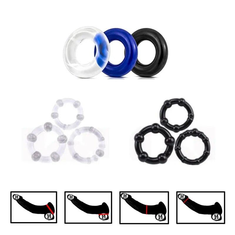 3Pcs Bead Male Delay Ejaculation Lasting Silicone Erection Ring Sex Toys Men Adults Ball Stretcher