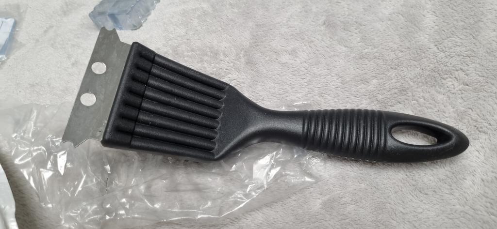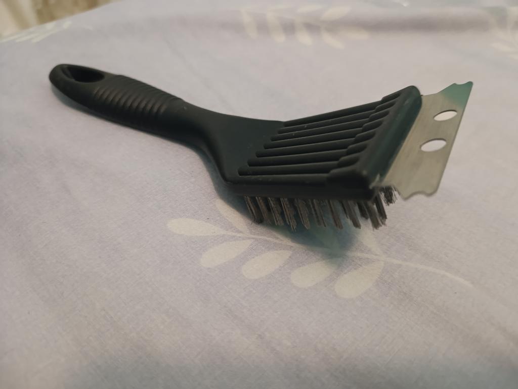Useful for cleaning the barbecue grill. Looks high-quality, small in size, handle and base made of plastic, brush and scraper made of metal. Haven't used it yet, I think it will be convenient. Thank you.