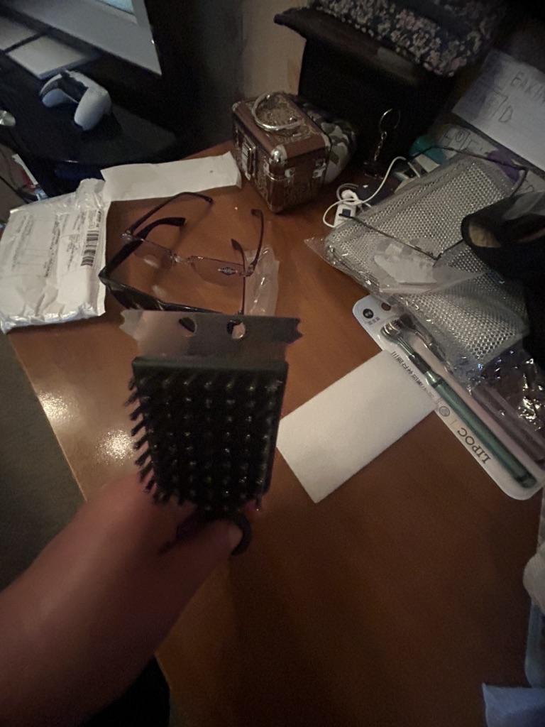 The brush is super! Convenient for cleaning the grill. The bristles are metal, the scraper knife with notches on the sides removes burnt-on grease well in hard-to-reach places.