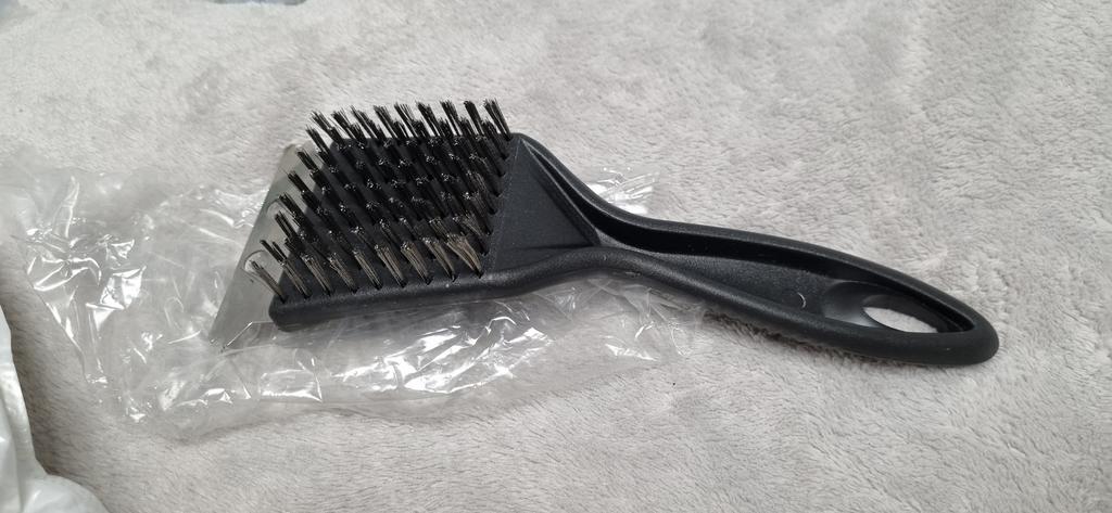 Convenient brush. There is a scraper and a wire brush. The quality is excellent!