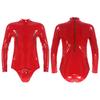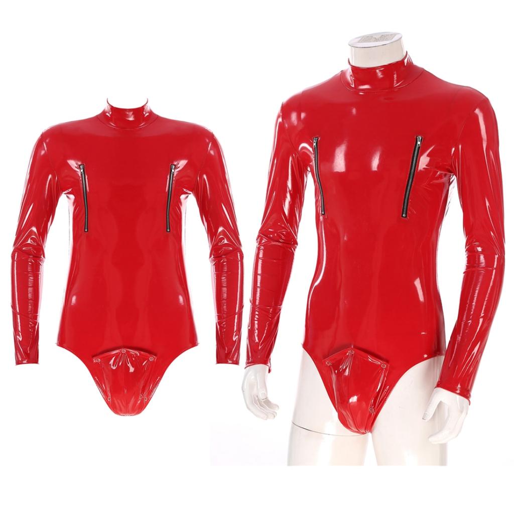 Men Shiny Latex Catsuit Leotard Jumpsuit Slim Fit Long Sleeve Zipper Boxer Bodysuit Leotard Clubwear Pole Dance Rave Costume