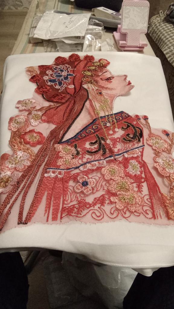 1Pc Embroidery Patch Opera Applique Peking Beaded Character Applique Repair 39*32CM