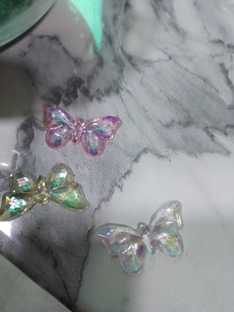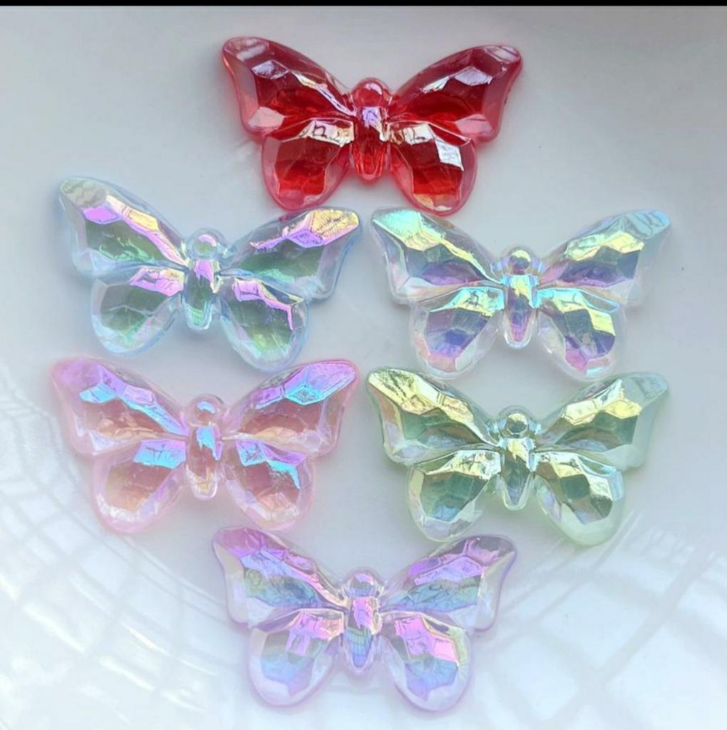 10 Pieces 32mm*18mm Mixed Crystal Ab Colored Butterfly Acrylic Flat Back Decorative Scrapbook Diy Jewelry Phone Case Decorated Butterfly