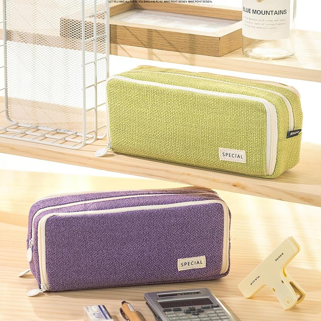 Angoo Linen Type Cloth Pencil Case Pen Bag 3 Compartments Storage Pouch Organizer for Stationery