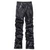 Hip Hop Mens Pleated Pu Leather Pants Harajuku Retro Streetwear Loose Ruched Casual Trousers Straight Solid Color Black Pants