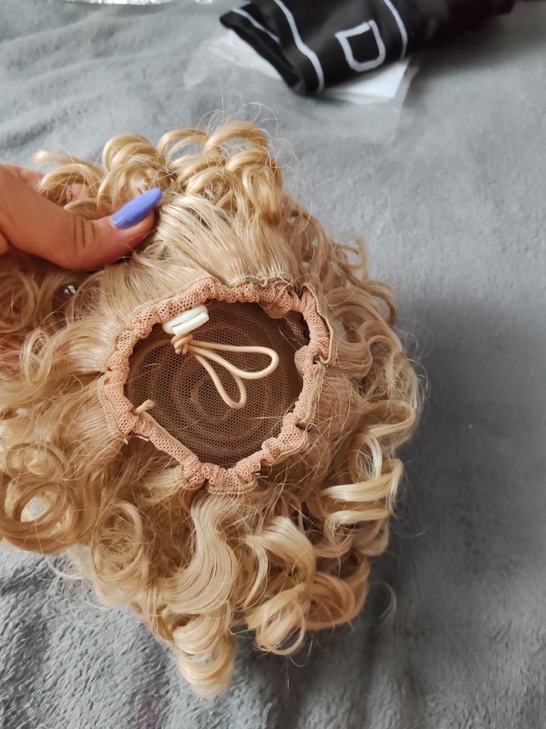 The bun is full of curls. The curls are long. You have to adapt, it’s round with a puff.