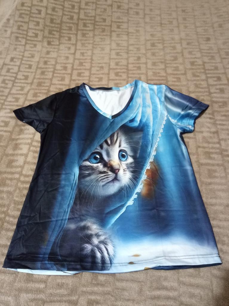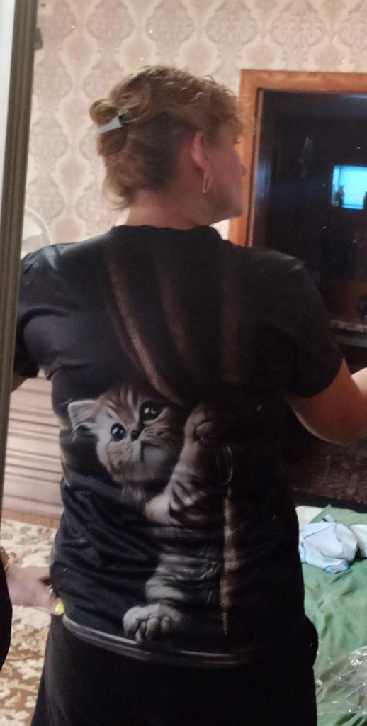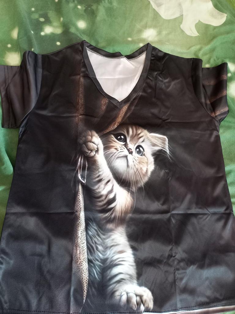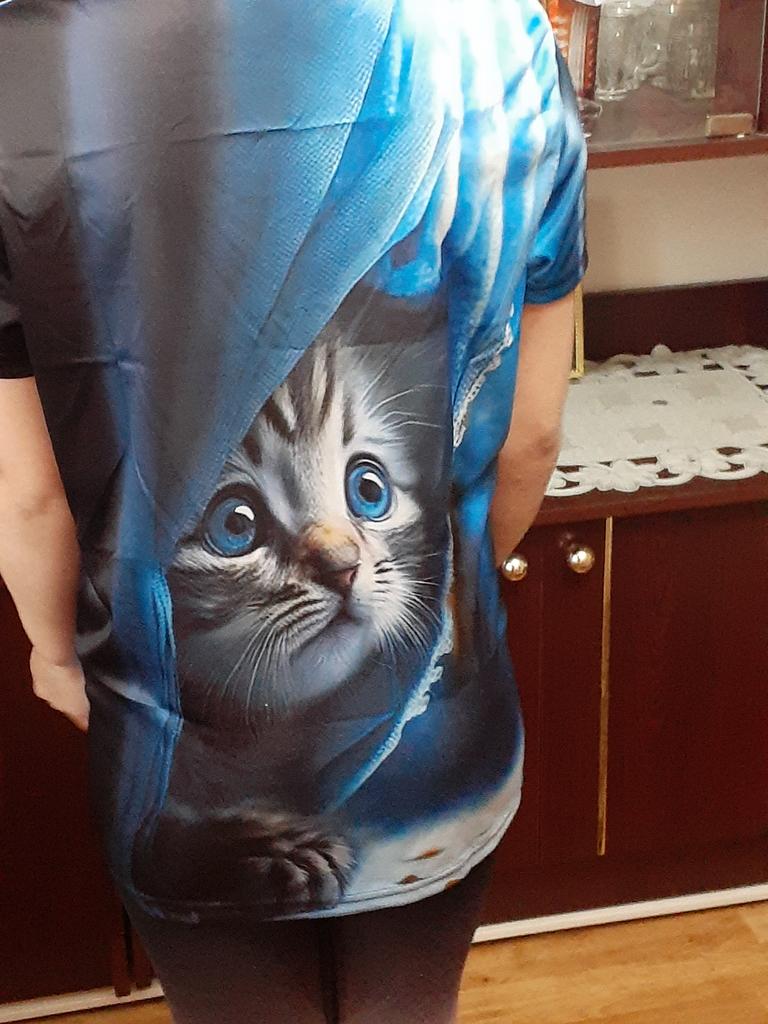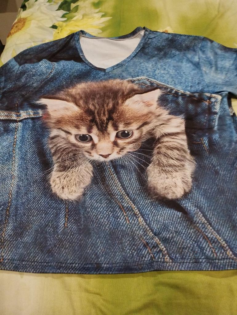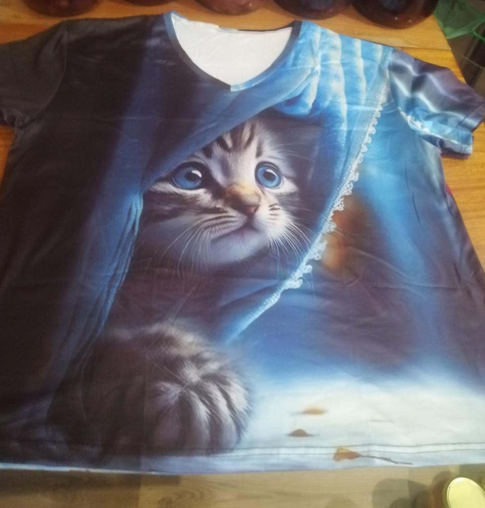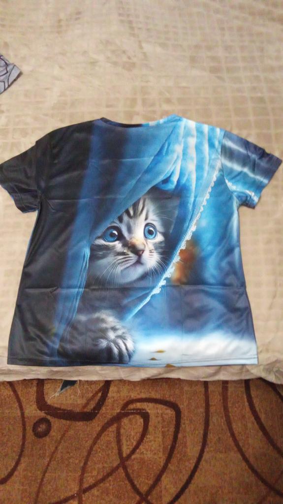 The T-shirt is interesting, nice, comfortable, beautiful, kittens both in front and in the back, thank you โบ๏ธ I recommend it!!!๐ค๐ค๐ค๐ท๐ท๐ท