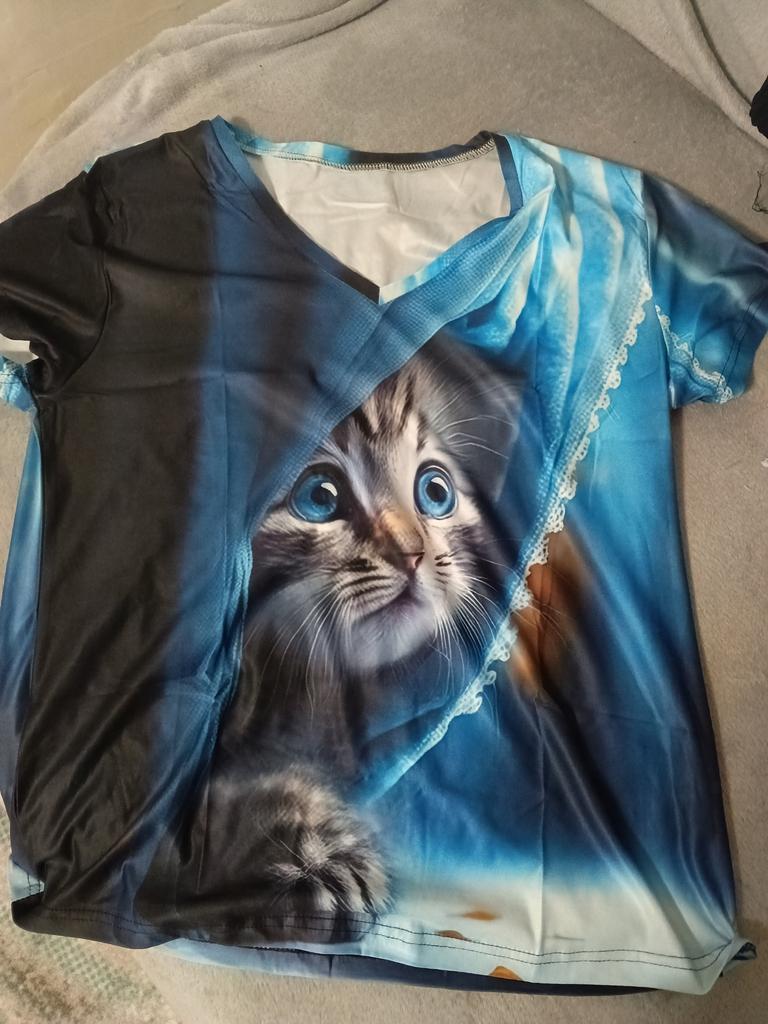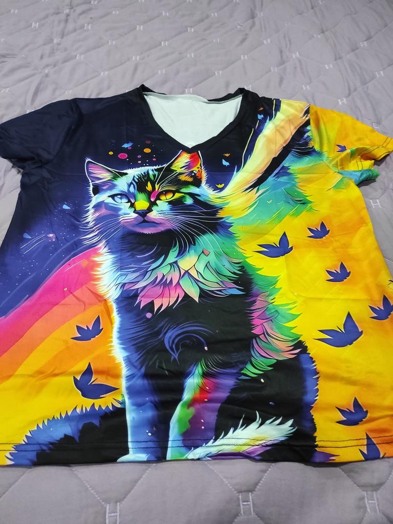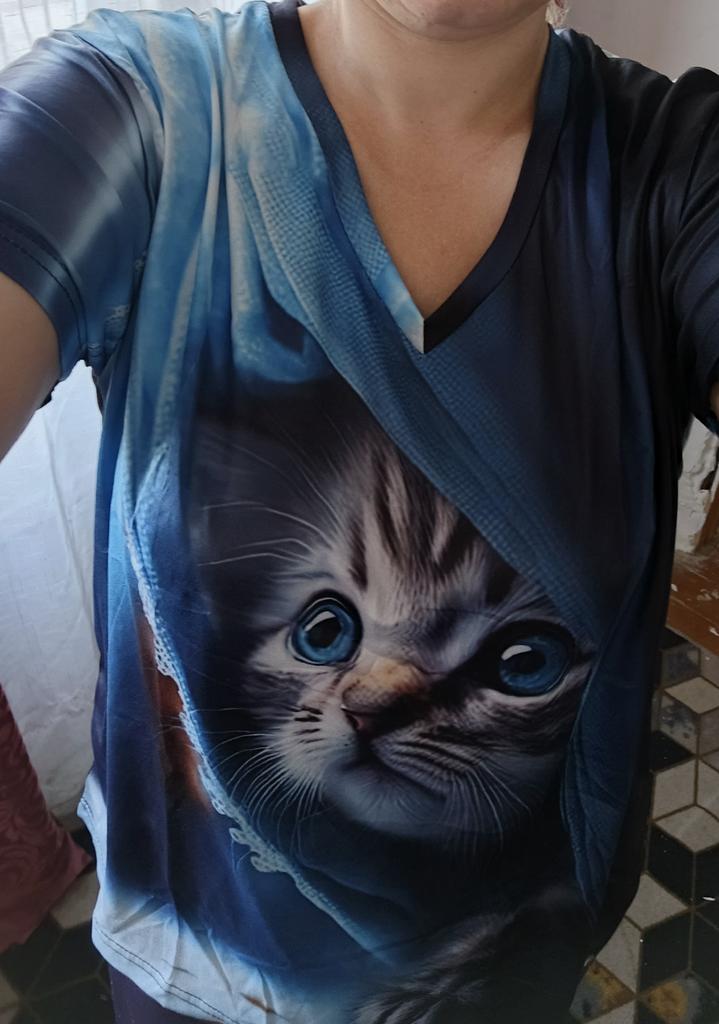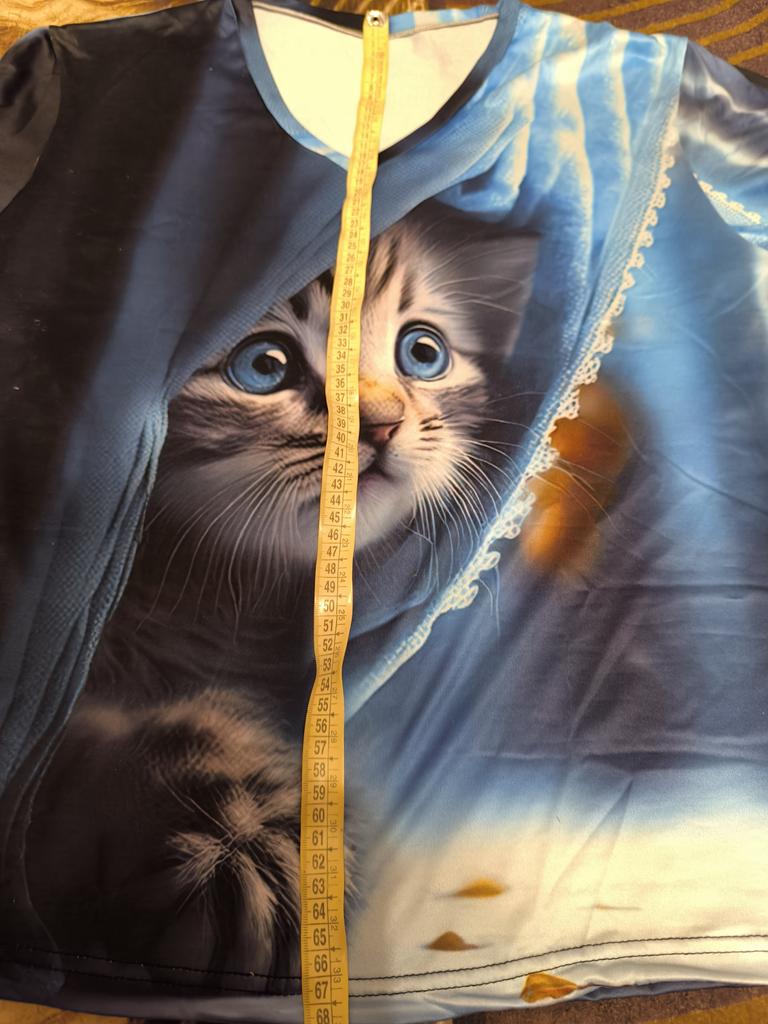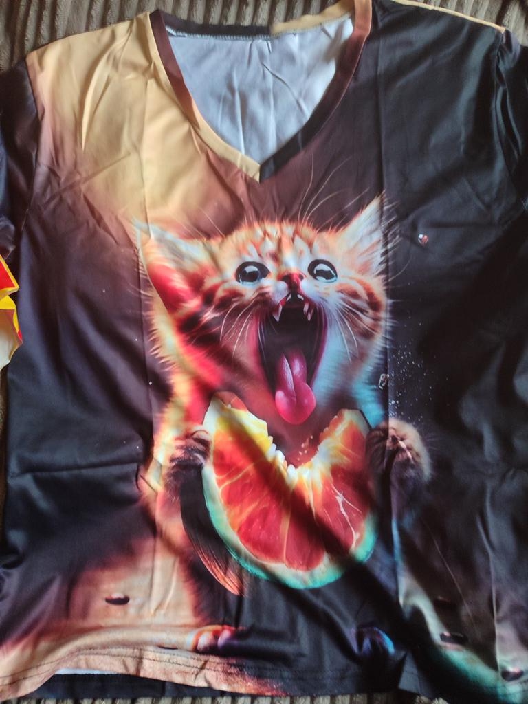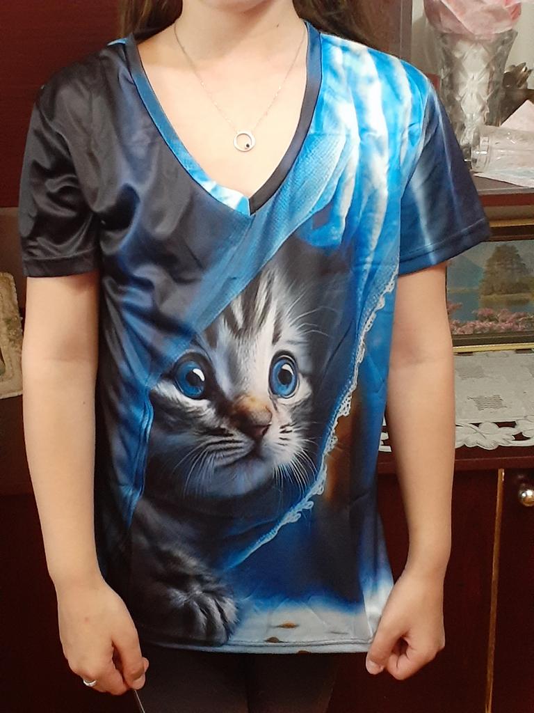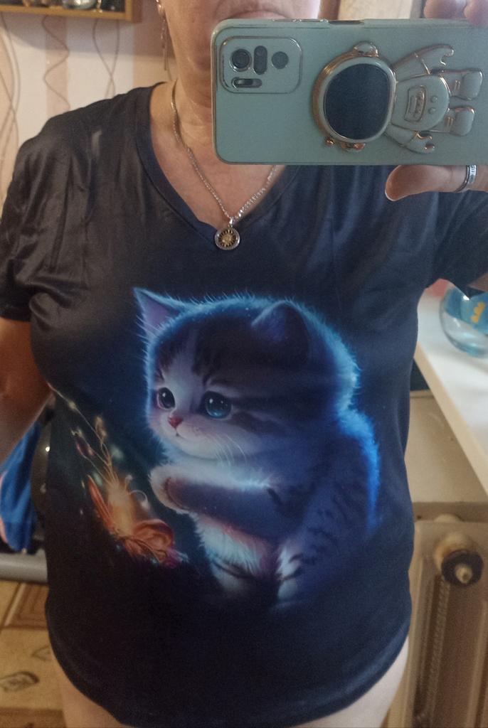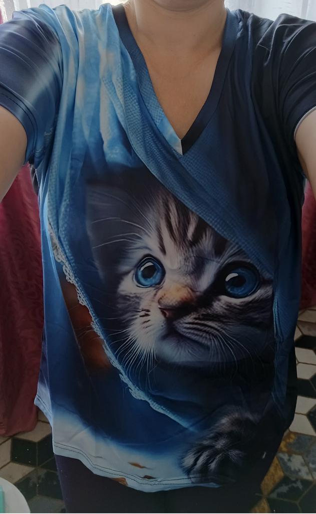 The T-shirt is interesting, nice, comfortable, beautiful, kittens both in front and in the back, thank you โบ๏ธ I recommend it!!!๐ค๐ค๐ค๐ท๐ท๐ท