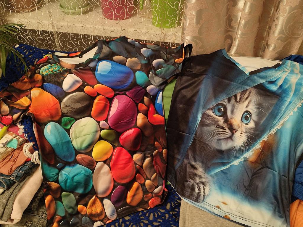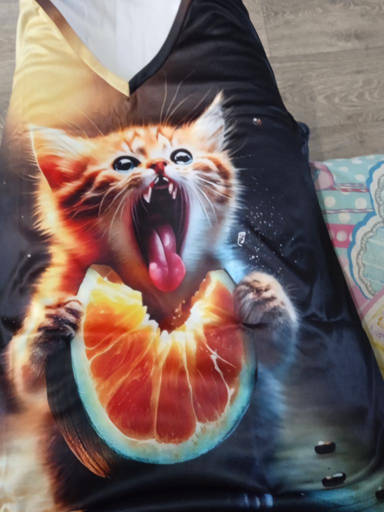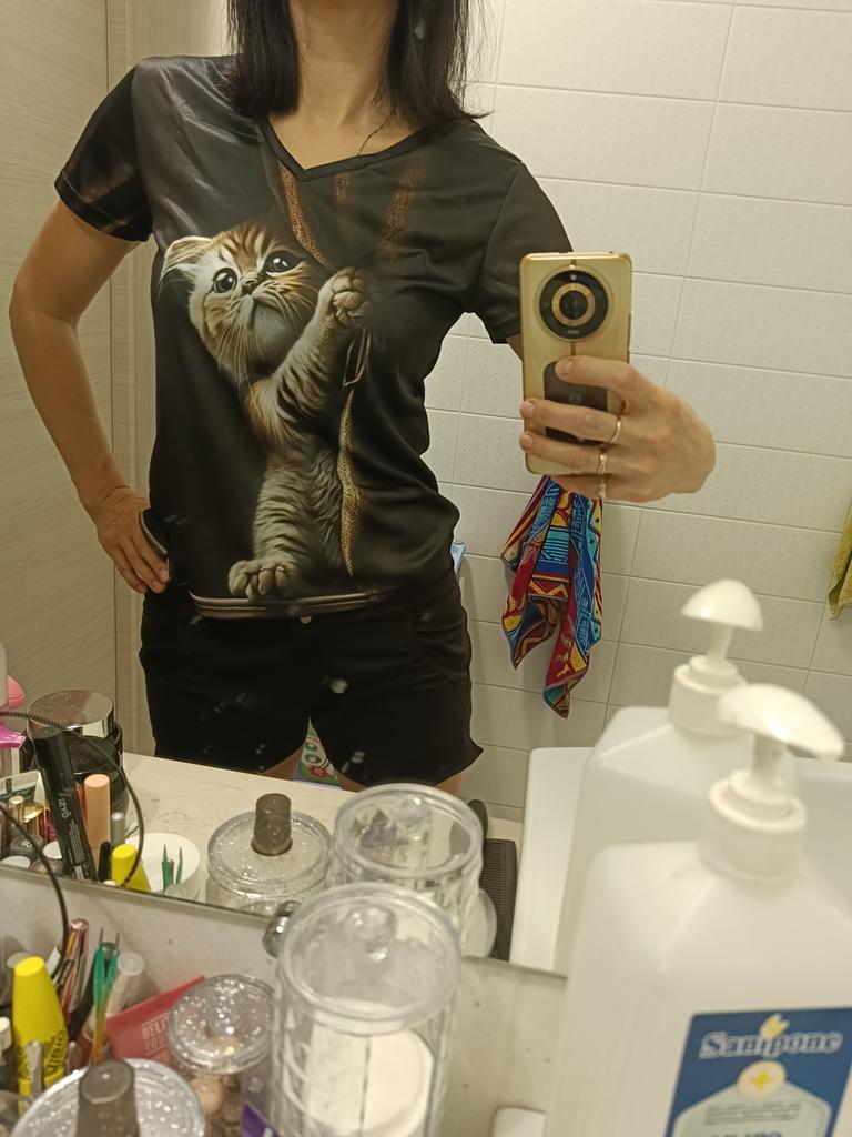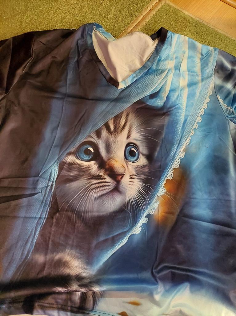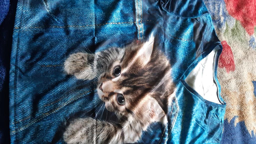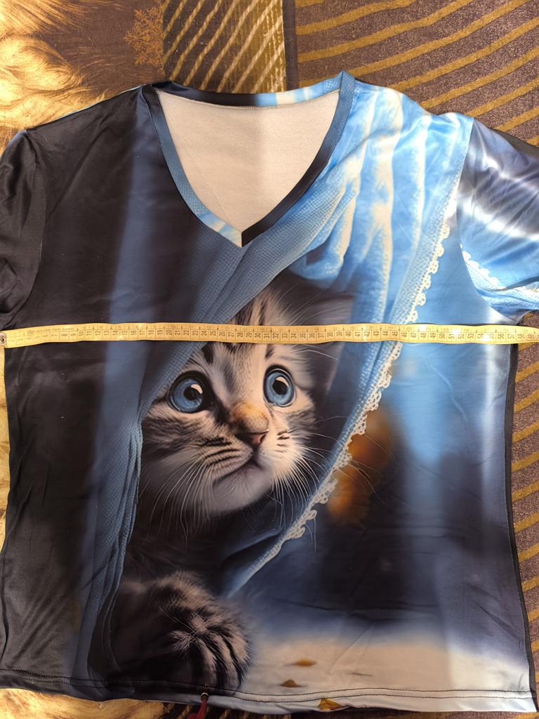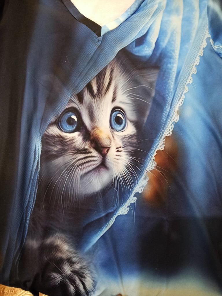 The T-shirt is interesting, nice, comfortable, beautiful, kittens both in front and in the back, thank you โบ๏ธ I recommend it!!!๐ค๐ค๐ค๐ท๐ท๐ท
