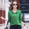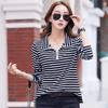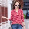 Spring and Autumn New Striped Zipper Long-sleeved Lapel T-shirt Women's Cotton Korean Version Slim Casual Polo Shirt