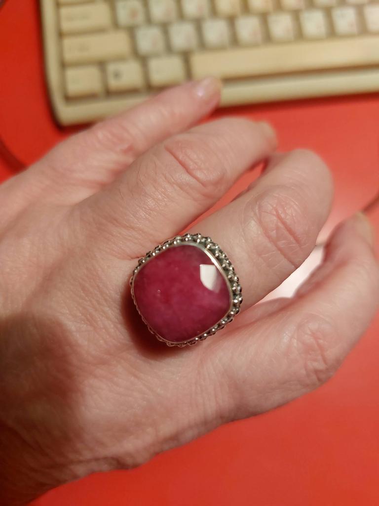 Very beautiful ring! Fully corresponds to the photo. Quite large, the stone is of a beautiful rich ruby color. The ring size corresponds to size 16.5.