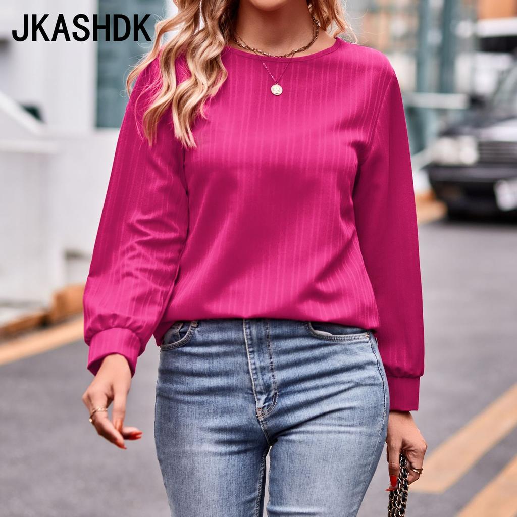 JKASHDK Women's Fashion Casual Spring Fall Solid Color Print Long Sleeve O-Neck Blouses & Shirts
