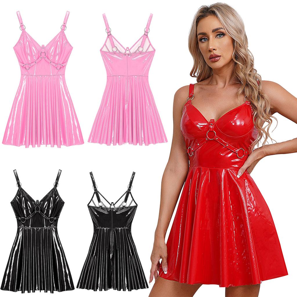 Dress has a sexy wet look, decorates with metal elements to bring a stylish punk gothic style. You would be the centerpiece at the party.