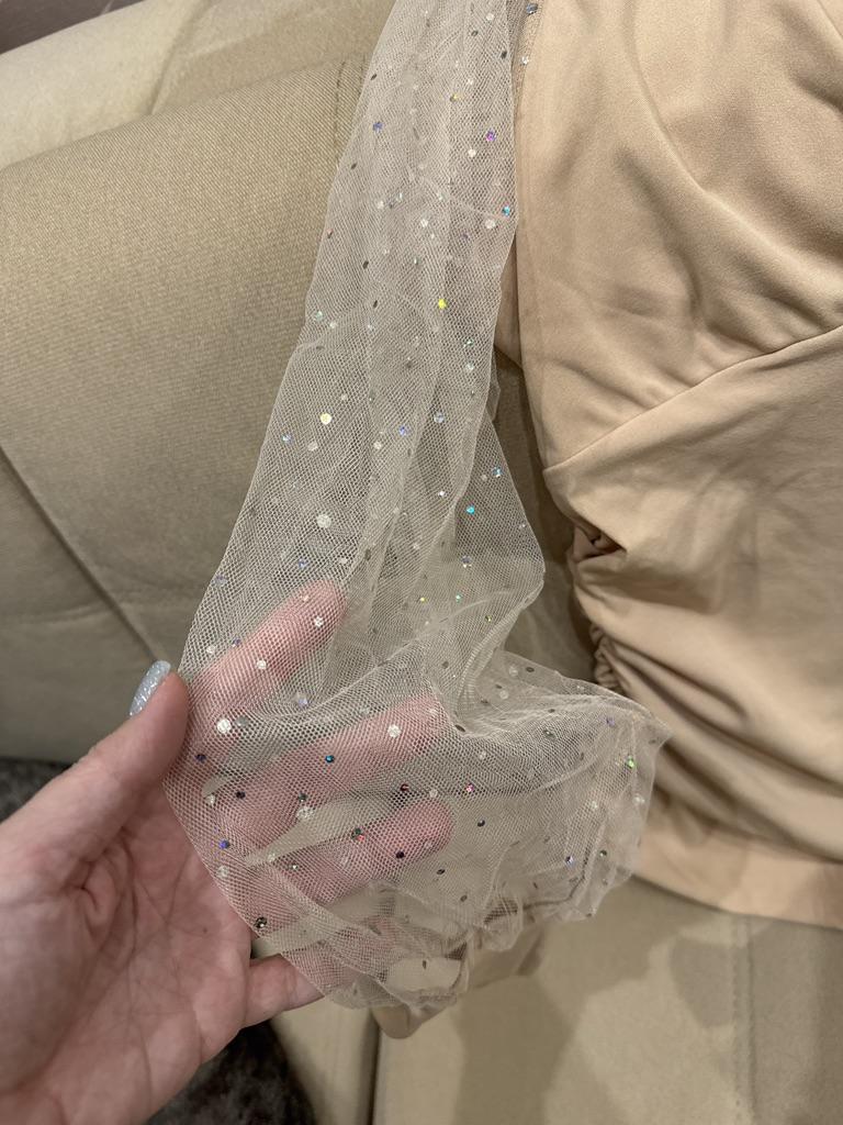 The armholes are too big. Awkward... Not sewn neatly, because of the transparent sleeves the seams seem to be on the outside... The color is some kind of coffee, sandy... definitely not beige.