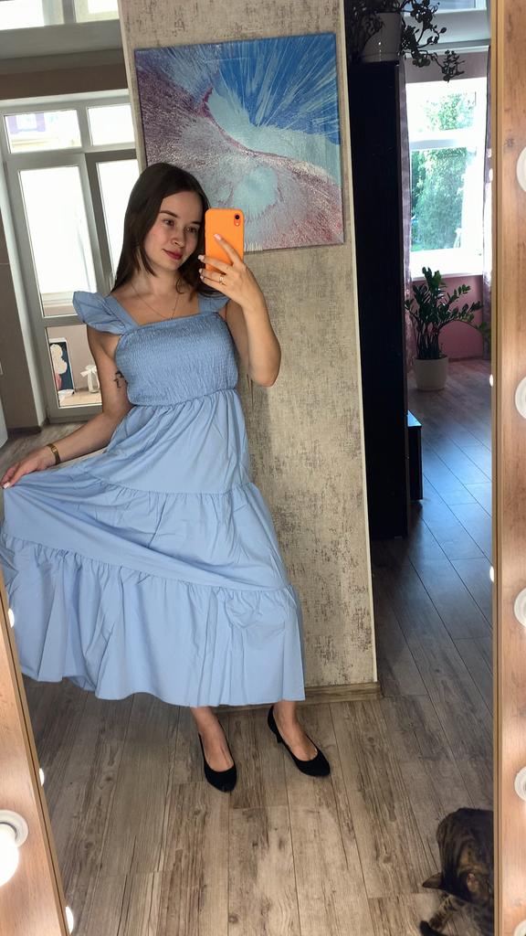 A long summer dress (or sundress๐ค) The dress is the same as in the seller's photo, everything seems to be not bad, but it does not sit quite as I would like, as you can see in the video. The matter concerns the size, it is big for me. But in general, everything matches the description, so there are no complaints. And what do you say? Judging by the video, the dress looks good on me?๐ค