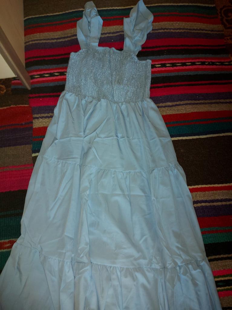 Beautiful high waist maxi dress โฃ๏ธ๐๐๐! Delivery time ๐: 16 days to Germany. โป๏ธScope of delivery: Included in delivery is a beautiful dress ๐ in the appropriate color and size. The product is only available in 2 different colors. It is available in sizes from S to XL. I ordered the product in size S in light blue and the dress ๐ fits me great and the color is exactly as shown. ๐ค๐ค๐ค๐ I normally wear dress size 36 (S). I weigh 55kg and am 167cm tall. ๐๐๐ฅ๐ฃ. ๐Quality โป๏ธ: The dress is light and swings beautifully. You can also wear it off the shoulder. The dress has an elastic band on the waist, which emphasizes it. The dress is opaque, which I think is very important. ๐ Material composition: 100% polyester. But the material is very comfortable on the skin. It feels like a cotton dress on the skin. I think the product ๐ is beautiful ๐๐๐๐๐ The dress comes down to about my ankles. Perfect for summer and vacation. ๐๐๐ I definitely take it with me on my vacation! โณ๏ธSummary โณ๏ธ: A beautiful dress ๐ that you have to order in your normal size. I am very happy to recommend the product.,5 stars. ๐! Thank you Joom and the seller for this beauty๐ค๐ค๐ค๐