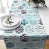 Blue & White Color Nautical Table Runner, Palm Tree Accent Table Runner, Tropical Plant Table Runner, Lighthouse Table Runner, Anchor Runner