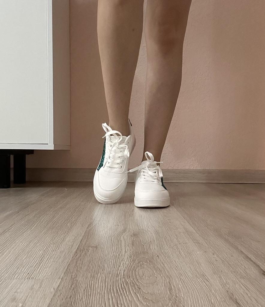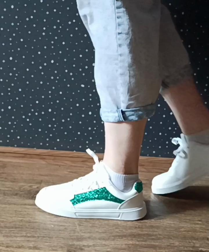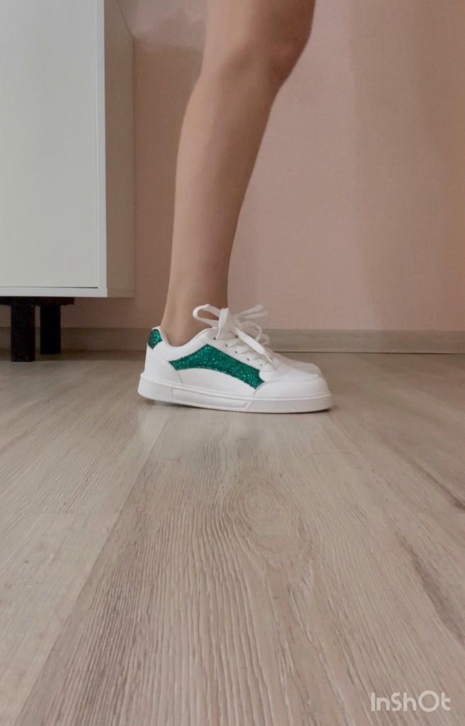 Beautiful sneakers for women π! Delivery time: ππβοΈβοΈβοΈ22 days to Germany. Scope of delivery: The delivery includes a pair of beautiful sports shoes in the appropriate size and color. Schune is available in 3 different colors to choose from . The product is available in sizes from 35 to 42 . I ordered the shoes in size 38 in green/white and they fit me perfectly. The shoes run small, so you have to order a size larger. I particularly like the glittery green pattern, namely the sequins ππ. The color of the shoes is exactly as shown.ππππππβοΈ I normally wear size 37 shoes. My foot length is 23.8 cm. These πare ideal for meπ! They are not particularly heavy and super comfortable, seem to be well made and do not have an unpleasant chemical smell. The product is ideal for everyday wear. β οΈβοΈπππ. Summary: Very nice π, you have to order a size larger. Thank you joom and the seller!πππ 5 stars π π πππ