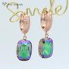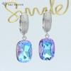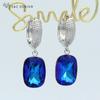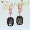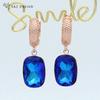 Classic Simple Rectangle Crystal Drop Earrings For Women Wedding Jewelry Rose Gold Color Party Fashion Elegant Eardrop