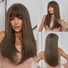 BLONDE UNICORN Black Synthetic Hair Wigs Princess Cut Bangs Long Straight Wig for Women Afro Cosplay Lolita Natural Hair Heat Resistant Fiber
