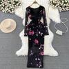 Sexy Tie-dye Printed V-Neck Long Sleeve Dress Women Chic Elegant Patchwork Vintage Midi Dresses Female Korean Fashion Casual One Piece Dress 2024