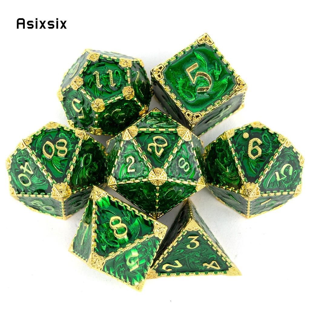 7 Pcs Green Yellow Dragon Metal Dice Solid Metal Polyhedral Dice Set Suitable for Role-Playing RPG Board Game Card Game