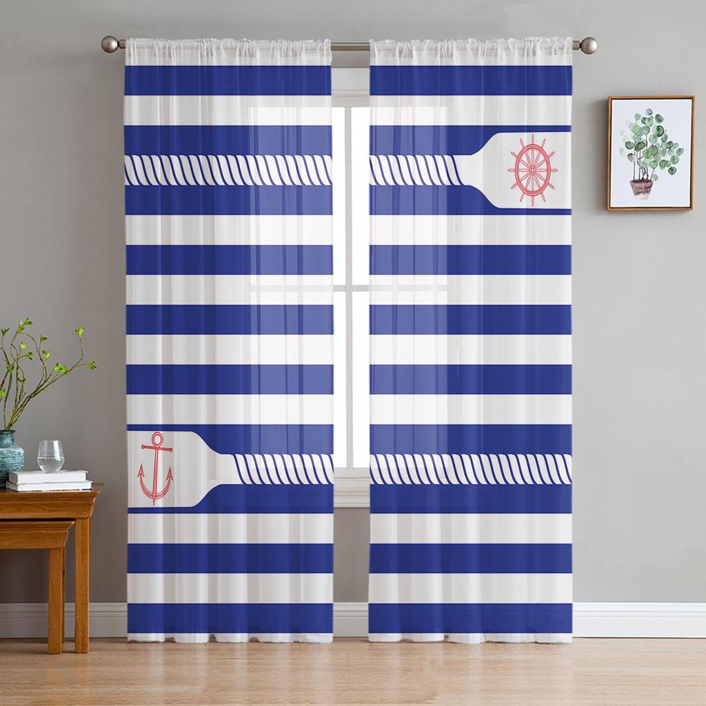 Anchor Rope Blue Stripe Tulle Curtains For Living Room Bedroom Voile Sheer Curtain Window Home Decor Drapes