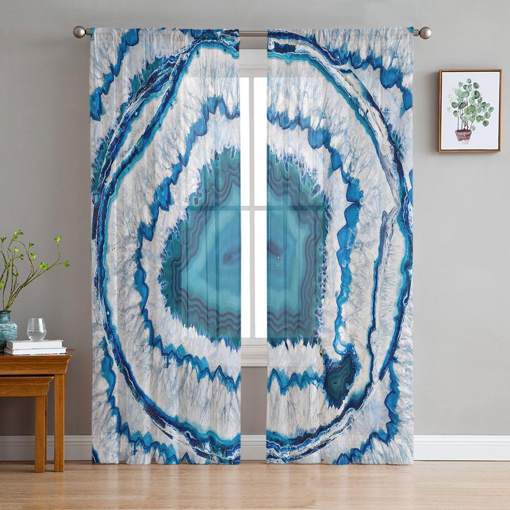 Retro Agate Texture Blue Tulle Curtains For Living Room Home Decor Window Curtain Kitchen Sheer Voile Curtain