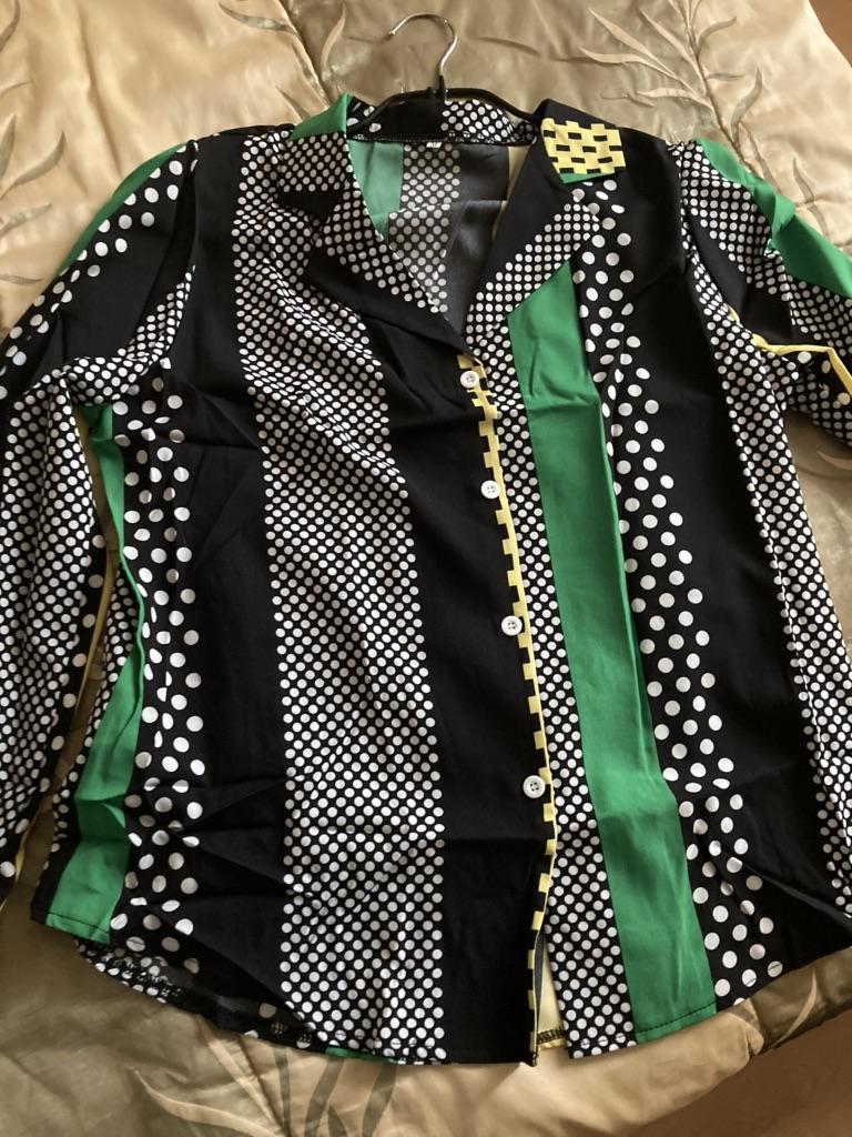 GMXIA Women's Fashion Casual Polka Dot Print Long Sleeve Suit Collar Blouses & Shirts Commuter Vibe Color Shirt