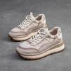 Johnature Genuine Leather Sneakers Casual Sports Shoes Round Toe Lacd-up Retro Versatile Women's Flat Shoes