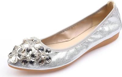 Beumens Flat Low Ballet Shoes with Size 24cm Women's Pumps, Heel, Slip-On Beading, Silver,