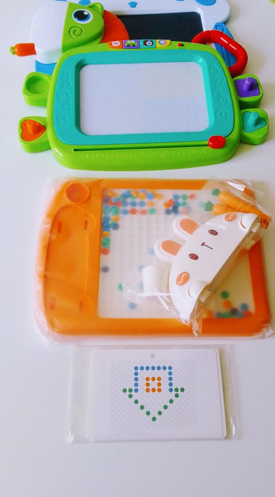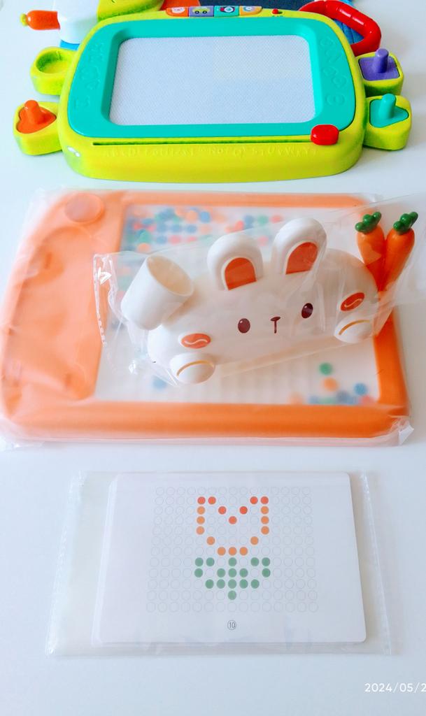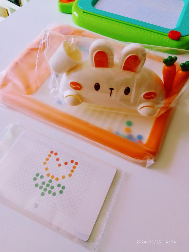 Introducing our magnetic drawing board, a perfect toy to enhance your child's creativity and motor skills. This fully sealed design ensures no loss of pieces, making it easy to flip over at will without worry. It comes with a variety of interesting cards that imitate picture placements, providing endless fun for your little one. The movable paintbrush helps cultivate the correct pen-holding posture, improving concentration and patience in the learning process. Children can use the magnetic pen to move colored beads into grooves, freely drawing patterns they desire. This not only releases their creativity but also cultivates color perception, imagination, attention, and hand-eye coordination. The powerful magnets ensure easy absorption and the moving pieces are not easy to fall off, making drawing patterns a breeze. Designed in a cute bunny shape, this magnetic drawing board makes an ideal gift for children. Encourage your child's interest in painting with this engaging and educational toy!
